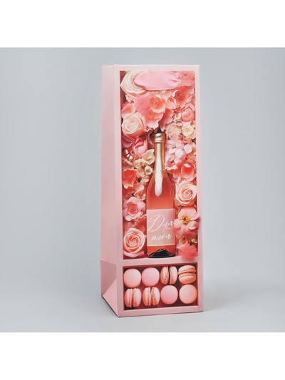 Пакет подарочный под бутылку, упаковка, «Розовое настроение», 9×25×8.5 см 10128057
