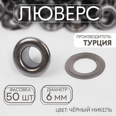 Люверс, d = 6 мм, цвет чёрный никель, цена за 1 штуку