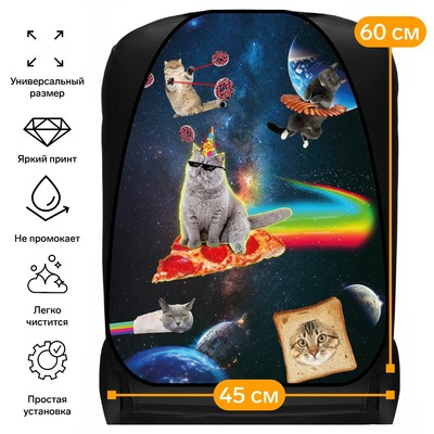 Накидка яркая, материал плотный, моющийся.легко надевается на сиденье с помощью резинок.