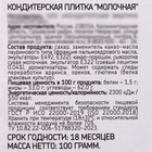 Состав: сахар, заменитель какао-масла лауринового типа (пальмоядровый стеарин, эмульгаторы Е492, Е322), какао-порошок, сухая молочная сыворотка, эмульгатор Е322 (соевый лецитин 0,4 %), ароматизаторы. Может содержать следы переработки арахиса, орехов, глютена (белка злаковых культур).