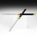 Погрузитесь в мир восточной эстетики и изящества с парными сувенирными мечами, которые станут не только украшением вашего интерьера, но и символом силы и гармонии. С длиной 51 см и великолепным сочетанием черного и золотого цветов, эти мечи привлекают внимание и создают атмосферу загадочности и величия.
