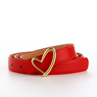 Этот красный ремень с золотой пряжкой создаёт элегантный акцент в женском гардеробе. Его узкий профиль подчёркивает талию, не нарушая линию силуэта.