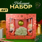 Новогодний подарочный набор косметики SB BEAUTY, шампунь, гель для душа, бомбочка, мочалка, с ароматом розы и мандарина