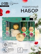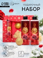 Новогодний подарочный набор косметики SB BEAUTY, шампунь, гель для душа, бомбочка, мочалка, с ароматом розы и мандарина - Фото 1