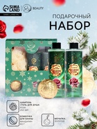Новогодний подарочный набор косметики SB BEAUTY, шампунь, гель для душа, бомбочка, мочалка, с ароматом мандарина - Фото 1