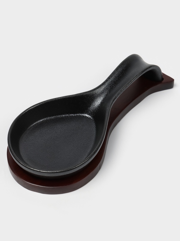 Черная Фарфоровая Подставка для Ложки с Поддоном
