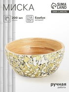 Элегантная бамбуковая миска, сочетает в себе натуральность и стильный дизайн. Прекрасно подойдет для подачи закусок или фруктов, добавив изюминку вашему столу. Золотистые, красные и белые узоры оживляют каждый прием пищи. Диаметр 10 см и ручная работа делают миску настоящим произведением искусства. Использовать для горячих блюд можно, а мыть в посудомоечной машине - нет. Гладкая текстура и круглая форма. Легкость и практичность без компромиссов.