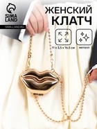 Сумка мини-клатч на магните, в форме губ, жёсткий корпус, на длинной цепочке, золотистая - Фото 1