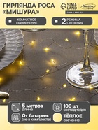 УЦЕНКА Гирлянда «Мишура» 5 м, роса, IP20, серебристая нить, 100 LED, 2 режима, от батареек AAх3, свечение белое