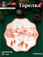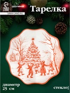 Тарелка новогодняя Доляна «Новогодние забавы», d=25 см, h=2 см, стекло, белая, красная