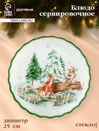 Блюдо новогоднее сервировочное Доляна «Зверьки в лесу», d=19 см, h=2.1 см, стекло, разноцветное - Фото 1
