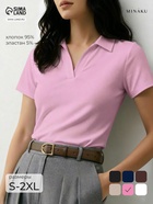 Эта женская поло — универсальная базовая вещь для гардероба. Модель прямого кроя с аккуратным V-образным вырезом создаёт элегантный и сдержанный силуэт, подходящий для офиса и повседневной носки.