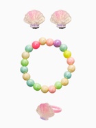 Каждый элемент набора продуман до мелочей: клипсы легко крепятся, кольцо регулируется под размер пальчика, а браслет с приятной текстурой не создаёт дискомфорта. Такой комплект станет прекрасным подарком для девочки любого возраста и позволит ей самостоятельно экспериментировать с внешним видом, развивая чувство стиля и уверенность в себе.