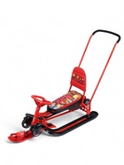 Снегокат предназначен для перевозки детей от 4 до 7 лет по плотному снегу или льду. Имеет сварную конструкцию из стальных труб, пластиковых элементов и мягкое сиденье, обтянутое искусственной кожей с рисунком. Оснащён буксировочным тросом с автоматической намоткой, механизмом выдвижных шасси, родительской ручкой и складной спинкой. Усиленный тормоз эффективен на обледенелой поверхности.