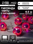 УЦЕНКА Гирлянда «Нить» 4.5 м с насадками «Цветочные шары», IP20, прозрачная нить, 15 LED, свечение красное, 220 В