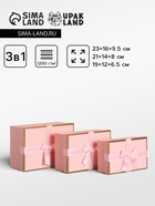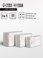 - Три квадратные коробки разных размеров: В набор входят коробки трёх пропорциональных габаритов (наибольшая — 19×19×9.8 см). Квадратная форма удобна для упаковки предметов с правильными очертаниями: книг, косметики, свечей, наборов посуды или аксессуаров. Разный объём позволяет скомпоновать основной подарок и сопутствующие мелочи.