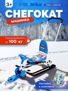Снегокат предназначен для перевозки детей от 4 до 7 лет по плотному снегу или льду. Имеет сварную конструкцию из стальных труб, пластиковых элементов и мягкое сиденье, обтянутое искусственной кожей с рисунком. Оснащён буксировочным тросом с автоматической намоткой, механизмом выдвижных шасси, родительской ручкой и складной спинкой. Усиленный тормоз эффективен на обледенелой поверхности.