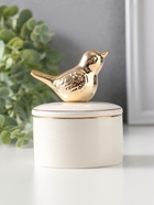 Эта керамическая шкатулка для драгоценностей — элегантный способ организовать и бережно хранить ваши украшения. Её классический дизайн с золотой отделкой и фигурной крышкой делает её не просто утилитарным предметом, а стильным аксессуаром для туалетного столика.