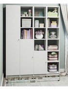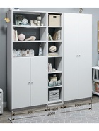 В комплект входят два однодверных шкафа и шкаф с распашными дверями и полками для декора, что позволяет создать сбалансированную систему хранения. Закрытые секции подходят для одежды, текстиля и личных вещей, полки — для книг, аксессуаров и декоративных элементов, помогая оформить интерьер и поддерживать порядок.