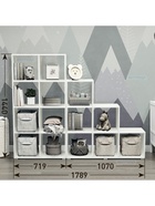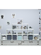 Вертикальное расположение модулей помогает рационально использовать площадь помещения, открытая конструкция обеспечивает быстрый доступ к вещам и удобное размещение книг, декоративных элементов, коробок и аксессуаров. Система легко комбинируется с другими модулями серии «Радуга», позволяя адаптировать интерьер под индивидуальные задачи.