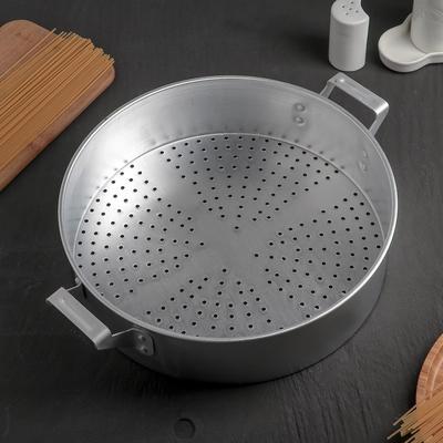 Хороший,объемный,на 800 гр сырых макарон,все после варки спокойно помещается,удобно промывать.