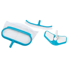 Для тех, кто уже стал счастливым обладателем летнего бассейна, не секрет, что его стенки становятся скользкими уже через пару дней после наполнения водой. Это, конечно, весело, но небезопасно. Чтобы уберечь себя от травм, мы рекомендуем приобрести набор для чистки бассейна. В него входит закруглённая щётка, которая позволит быстро, просто и качественно очистить стенки от скользкого налёта, а также сачок, для вылавливания крупного мусора: листьев, жучков и др.