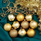 Наполните дом атмосферой оптимизма и благополучия в канун Нового года. Ведь золотой цвет символизирует изобилие и богатство. Потому ёлочные игрушки «Ариозо», шары новогодние, набор с бусами и мишурой, 12 шт., золотистый как нельзя лучше подойдут для праздничного интерьера.