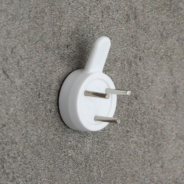 Чтобы закрепить изделие на стене, необходимо аккуратно бить молотком по металлическим иголкам, вставленным в основание крючка. Удары следует делать до полной забивки иголок.