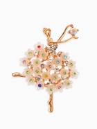 Эта изящная брошь с образцом балерины воплощает женственность и грацию, добавляя яркие цветовые акценты в любой образ. Золотистая фурнитура гармонично сочетается с многоцветными вставками из страз и пластика, создавая эффект живой, динамичной композиции.
