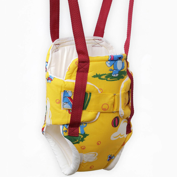 Посадите полугодовалого кроху в сиденье-штанишки. Малышу понравится активная игра, он будет подпрыгивать и качаться. Размер посадочного места можно настроить индивидуально, а за перекладину ребёнку будет удобно держаться.