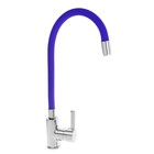 Смеситель для кухни Accoona с силиконовым изливом изготовлен из латуни с хромированным покрытием. Имеет высокий поворотный силиконовый излив.
