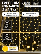 Гирлянда «Занавес» 2×1.5 м с насадками «Шарики», IP20, прозрачная нить, 360 LED, свечение мульти, 8 режимов, 220 В