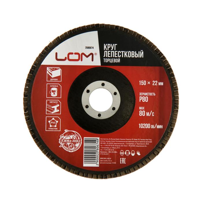 Круг лепестковый торцевой ЛОМ, 150×22 мм, Р80 - Фото 1