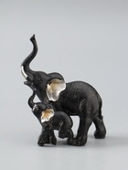 Эта скульптура африканского слона со слонёнком — больше, чем просто статуэтка. Это тёплый образ семьи, застывший в удивительно детализированном полистоуне. Композиция передаёт нежность и защиту: взрослый слон бережно сопровождает малыша, а их ушки отливают благородным золотом, добавляя интерьеру ноту изысканности.