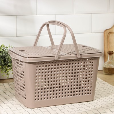Небольшая аккуратная и стильная корзинка для пикника. Прочный пластик, удобные ручки, для детей самое то