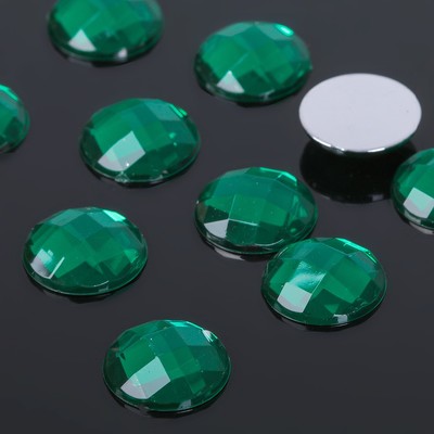 Стразы плоские клеевые круг, 14 мм, (набор 10 шт.), цвет изумрудный