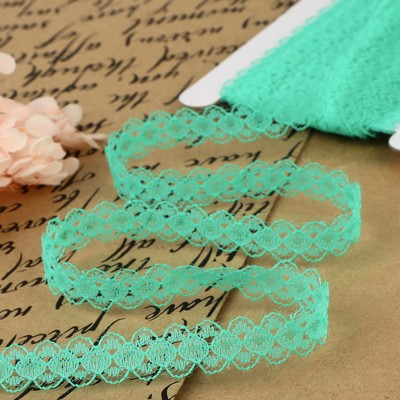 Красивая тесьма кружевная. Метраж соответствует. Один кусочек без разрывов пришел. Цвет ярко мятный насыщенный оттенок. Подешевел на 10р пока был в пути-)) Заказала и красный следом пока цена упала.
