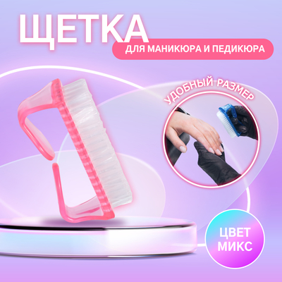 Хорошая щётка для педикюра и маникюра. Отлично вычищает пыль из боковых пазух после аппарата и опила. Слегка жестковатая, очень чуствительную тонкую кожу может немного поцарапать, поэтому с нажимом лучше быть аккуратнее. Ручка удобно одевается на рабочую руку (по типу кастета), что экономит время в ходе проведения маникюра, то есть не нужно постоянно её брать - убирать, развернул руку, стряхнул, и работаешь дальше. Но смею предположить что опять же зависит от размеров руки мастера. Неплохо выдерживает замачивание в дезрастворе, но слегка желтеет со временем и начинает осыпаться ворс. В целом покупкой довольна
