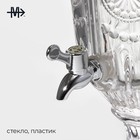 Диспенсер для напитков Magistro «Восход» — это стильное и функциональное решение для подачи разнообразных напитков. Благодаря своему оригинальному дизайну и большому объёму он станет отличным дополнением к вашему столу. Изготовленный из высококачественного стекла, диспенсер обладает прочностью и долговечностью. Размеры изделия составляют 25 x 19 x 50 см, что позволяет удобно разместить его на столе или в шкафу.