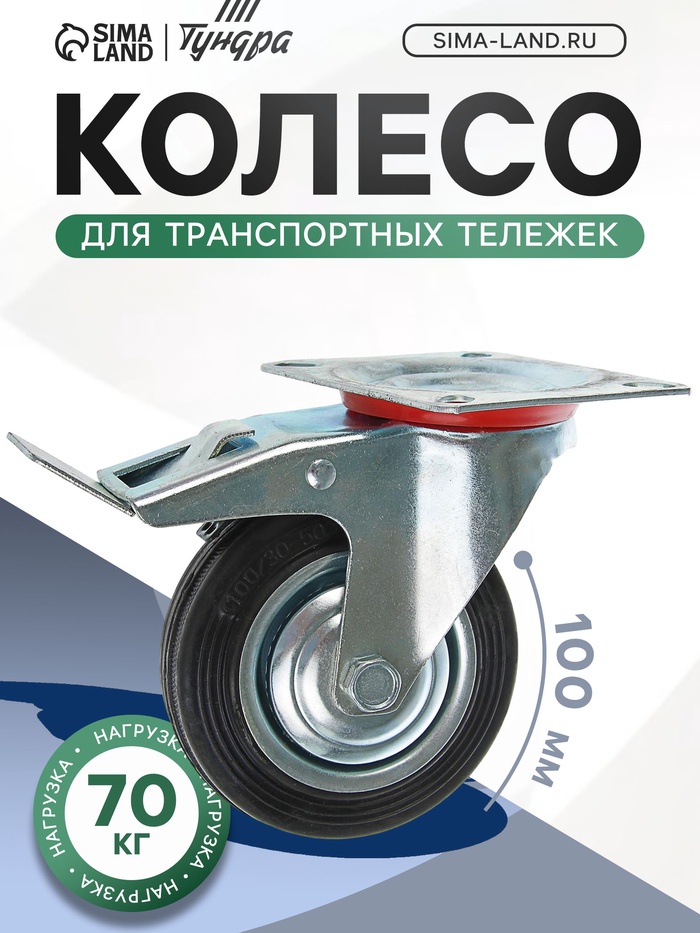 Колесо для транспортных тележек, d=100 мм, на площадке, со стопором - Фото 1