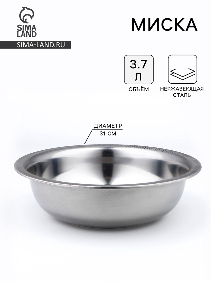 Миска из качественной нержавеющей стали станет незаменимой посудой на вашей кухне. Это универсальная посуда, её можно использовать для салатов, для приготовления пищи. Миску можно брать с собой на природу и не бояться, что она разобьётся.