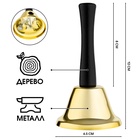 Яркий и стильный, изготовленный из тонкого металла он обеспечивает чистый и звонкий звук, а ручка помогает удерживать изделие. Колокольчик имеет серебряный цвет, который привлекает внимание, компактный и удобный в использовании.