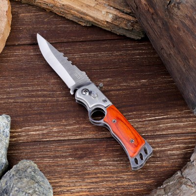 Хороший походный ножик,кнопочный с фиксатором,чтобы не открылся случайно,брали для сбора грибов и для рыбалки.