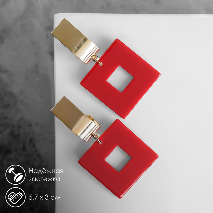 Яркие квадратные серьги с красными акцентами на золотистой основе — лаконичное украшение, подчёркивающее индивидуальность и стиль. Длина 5,7 см создаёт заметный, но не перегруженный образ, подходящий для женщин, ценящих выразительность и простоту.