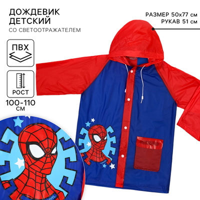 Дождевик детский, размер M, 100-110 см, Человек-паук