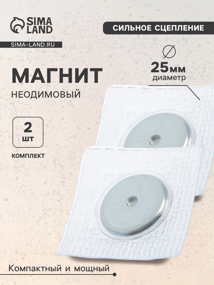 Магнит неодимовый для авто, d=25 мм, набор 2 шт. - Фото 1