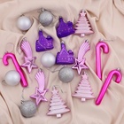 Набор из 18 однотонных шаров диаметром 4 см в серебристо-сиреневой гамме сочетает в себе элементы советской эстетики и современного стиля фьюжн. Лёгкие пластиковые украшения создают изящный и выразительный акцент в праздничном оформлении, подчёркивая атмосферу зимнего вечера.