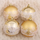 Набор из шести зелёных ёлочных шаров диаметром 8 см украшен изящным рисунком, объединяющим элементы новогоднего барокко, датского минимализма, шебби-шака, скандинавского стиля и фьюжн. Лёгкий пластик обеспечивает удобство размещения и сохранность украшений на ёлке.
