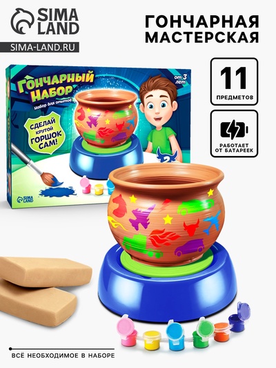 На наших батарейках скорость развивает нереально большую, слишком, не возможно лепить, переключатель скорости неудобно сделан, в комплекте глина 2 куска, брать сразу нужно целый для небольшой вазы, в инструкции не написано, что руки смачивать водой надо постоянно, брали ребёнку на 5 лет, делали всей семьёй, все соответствует описанию, но делать оказалось сложнее чем мы думали