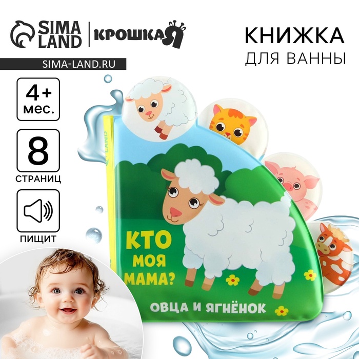 Книжка - игрушка для ванны Крошка Я «Кто моя мама?», с окошками, от 4 мес.
